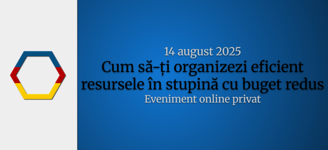 Cum să-ți organizezi eficient resursele în stupină cu buget redus – 14 august 2025 – Eveniment online privat