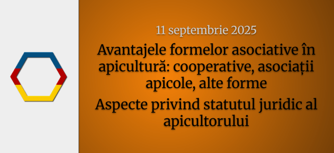 Avantajele formelor asociative în apicultură: cooperative, asociații apicole, alte forme – Aspecte privind statutul juridic al apicultorului – 11 septembrie 2025 – Eveniment online privat